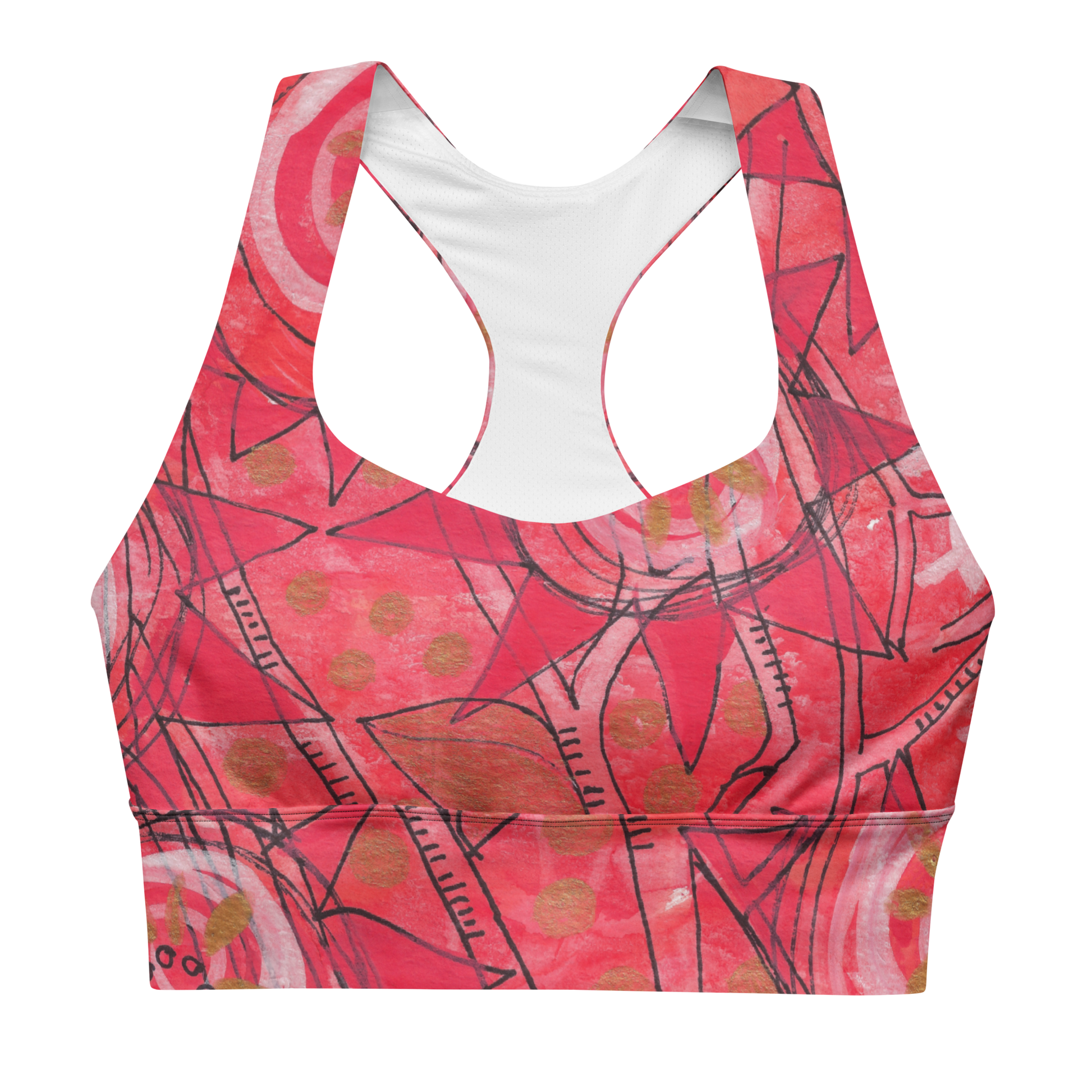 This sports bra is both functional and FUN, making it the perfect workout top for exercising. Made from recycled body-sculpting compression fabric with a double-layered front and shoulder straps, it's perfect for medium to high intensity workouts.