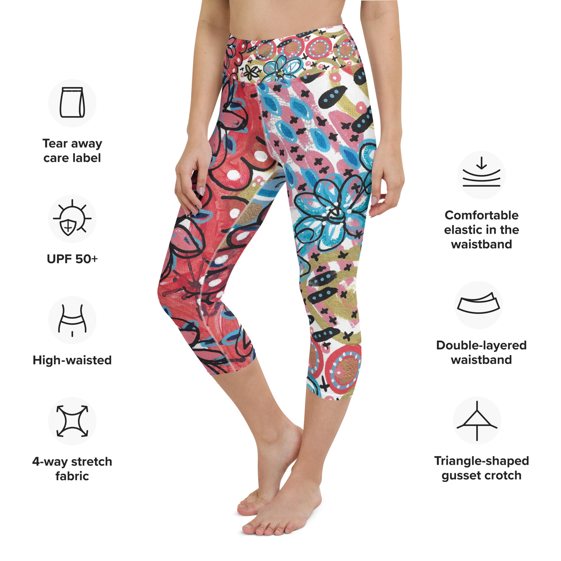 These high-rise yoga capri leggings deliver ultra comfort, even during your most intense workouts. These cheerful capris embody a sense of joy and playfulness. Grab yours and see where they takes you!